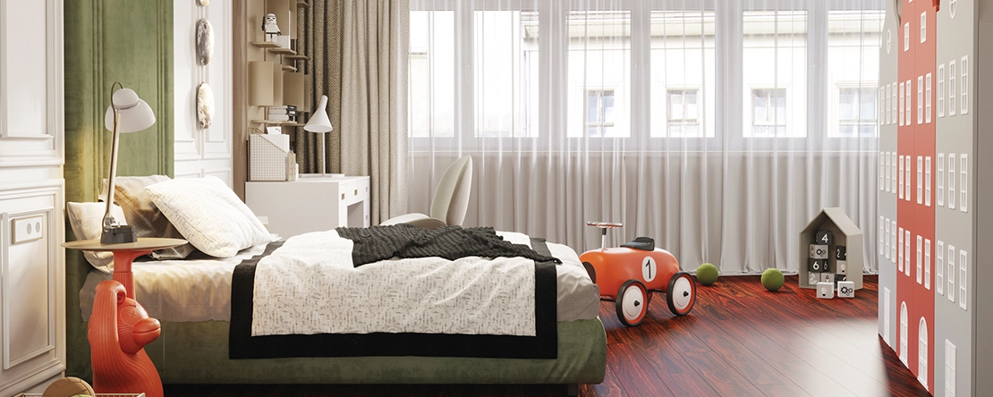 Чем заменить: Выбирайте ламинат или паркет в натуральных, спокойных тонах. Оттенки светлого дуба, ореха или выбеленного ясеня создают отличную базу. Не менее актуальны дымчато-серые, бежевые и другие сложные нейтралы — они выглядят современно, не перетягивают внимание и сочетаются с любой палитрой.